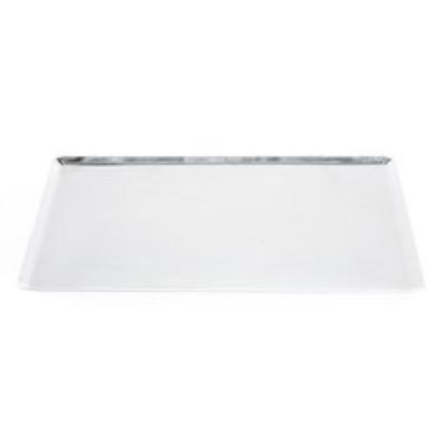 A commercial grade baking tray made from stainless steel that is suitable for use in commercial ovens or hot boxes. Larger aluminium baking trays are also available for hire.