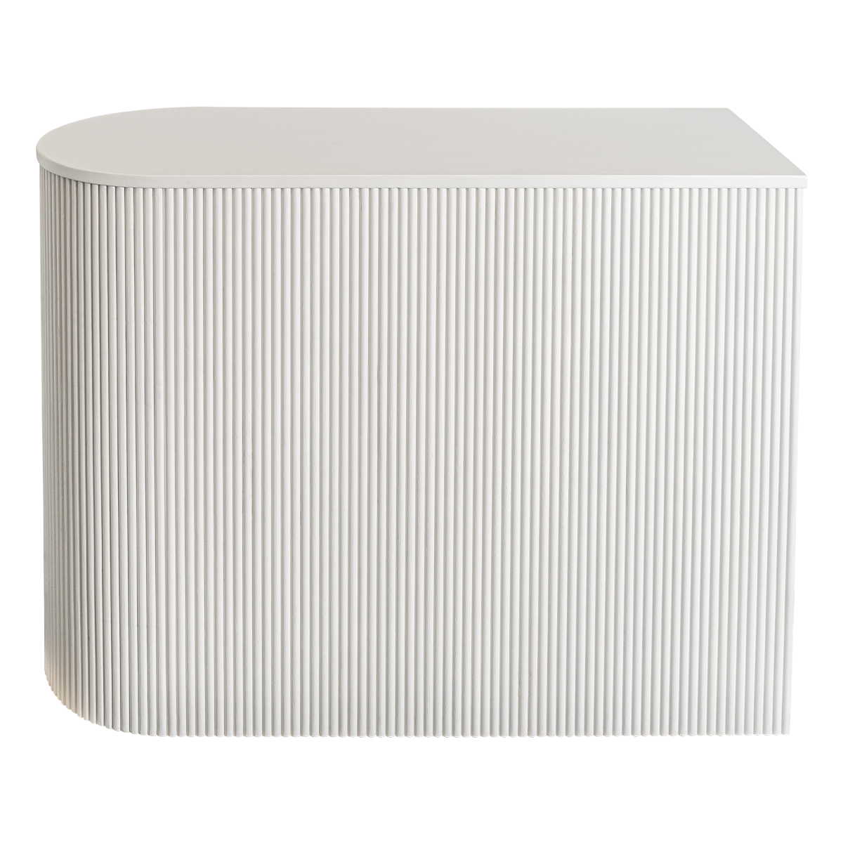A modern style bamboo bar with curved ribbed detail in white. Comes with one curved edge, can be paired with the rest of the range to make a medium or large bar with two curved ends.