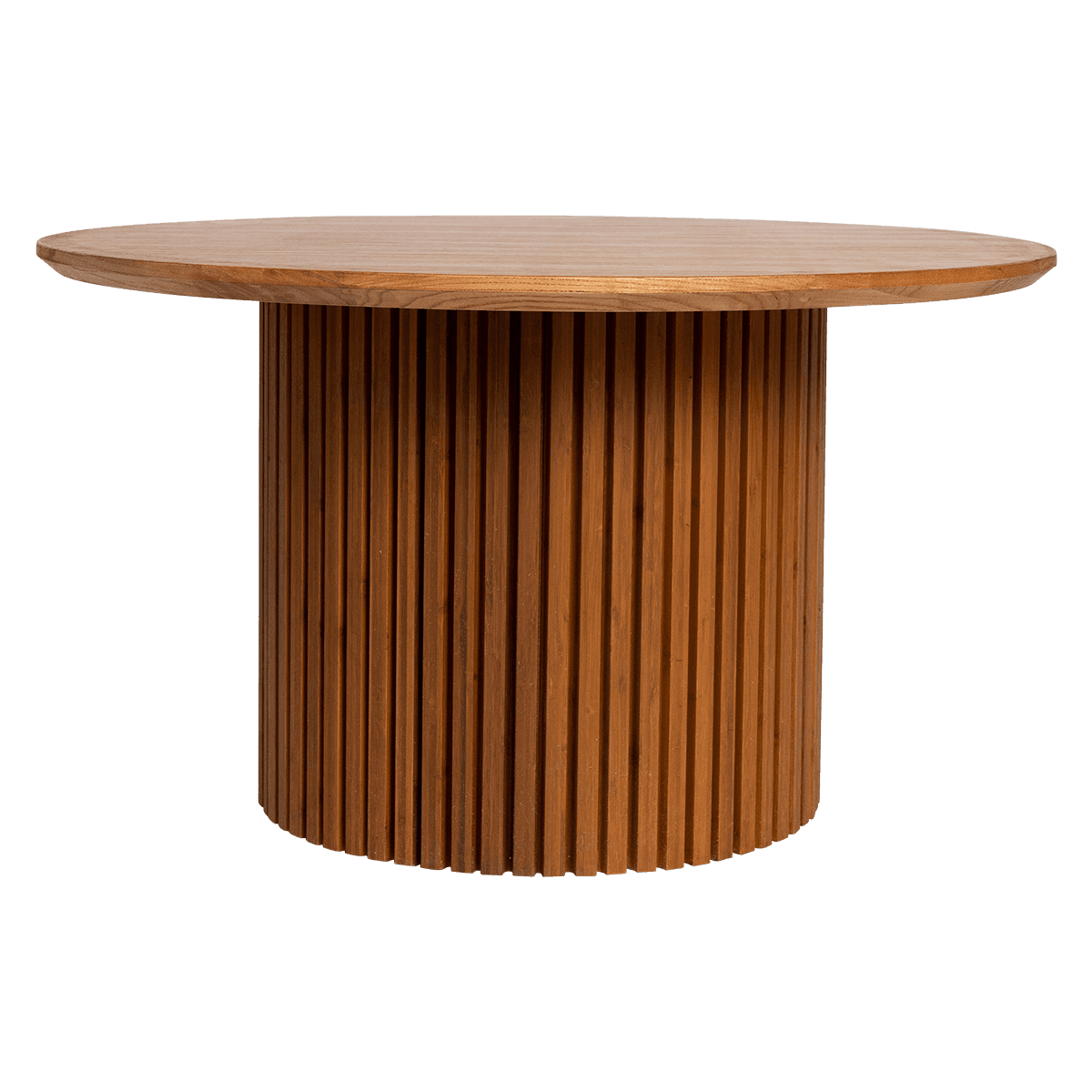 A contemporary bamboo coffee table with ribbed panelling in natural.