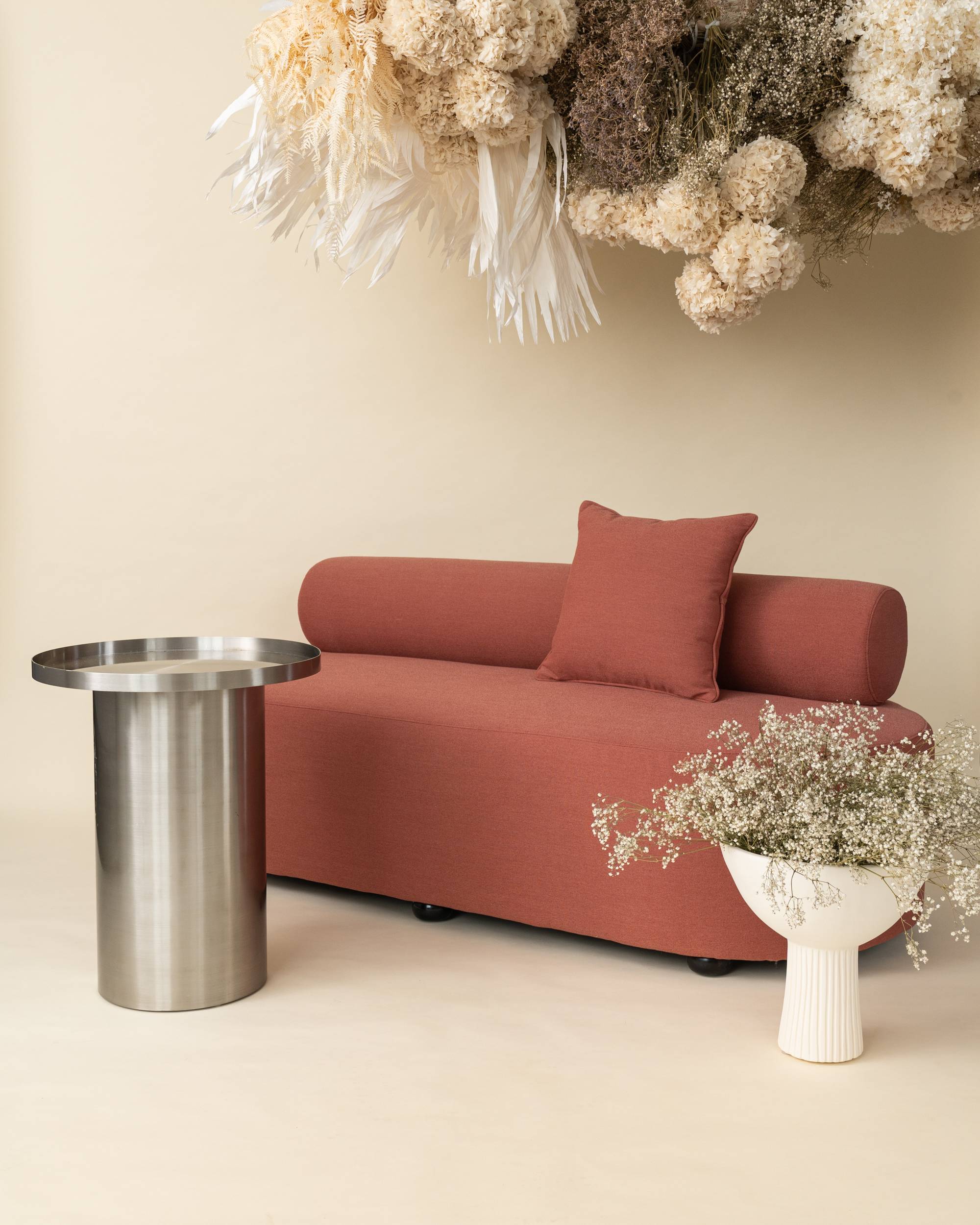 Part of our new Curve range, the Florence 3 seater sofa in Coral has a sleek circular design making it a statement piece for your next event. A matching single seater is also available.