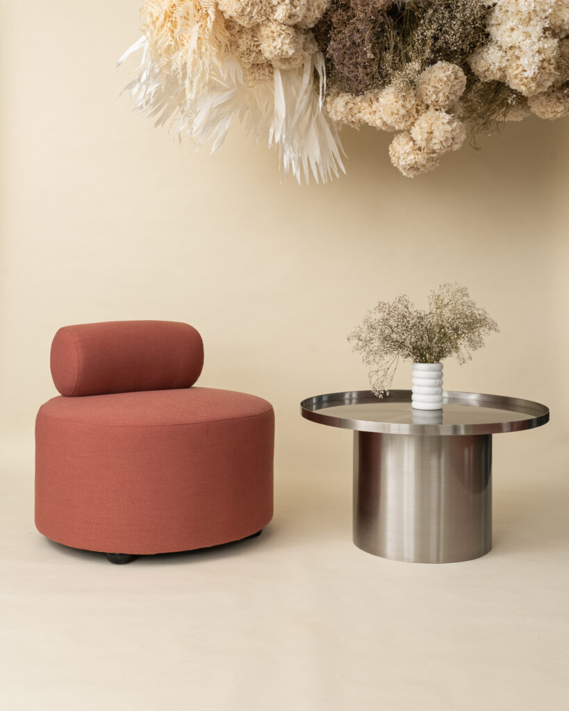 Part of our new Curve range, the Florence single seater in Coral has a sleek circular design making it a statement piece for your next event. A matching 3 seater is also available.