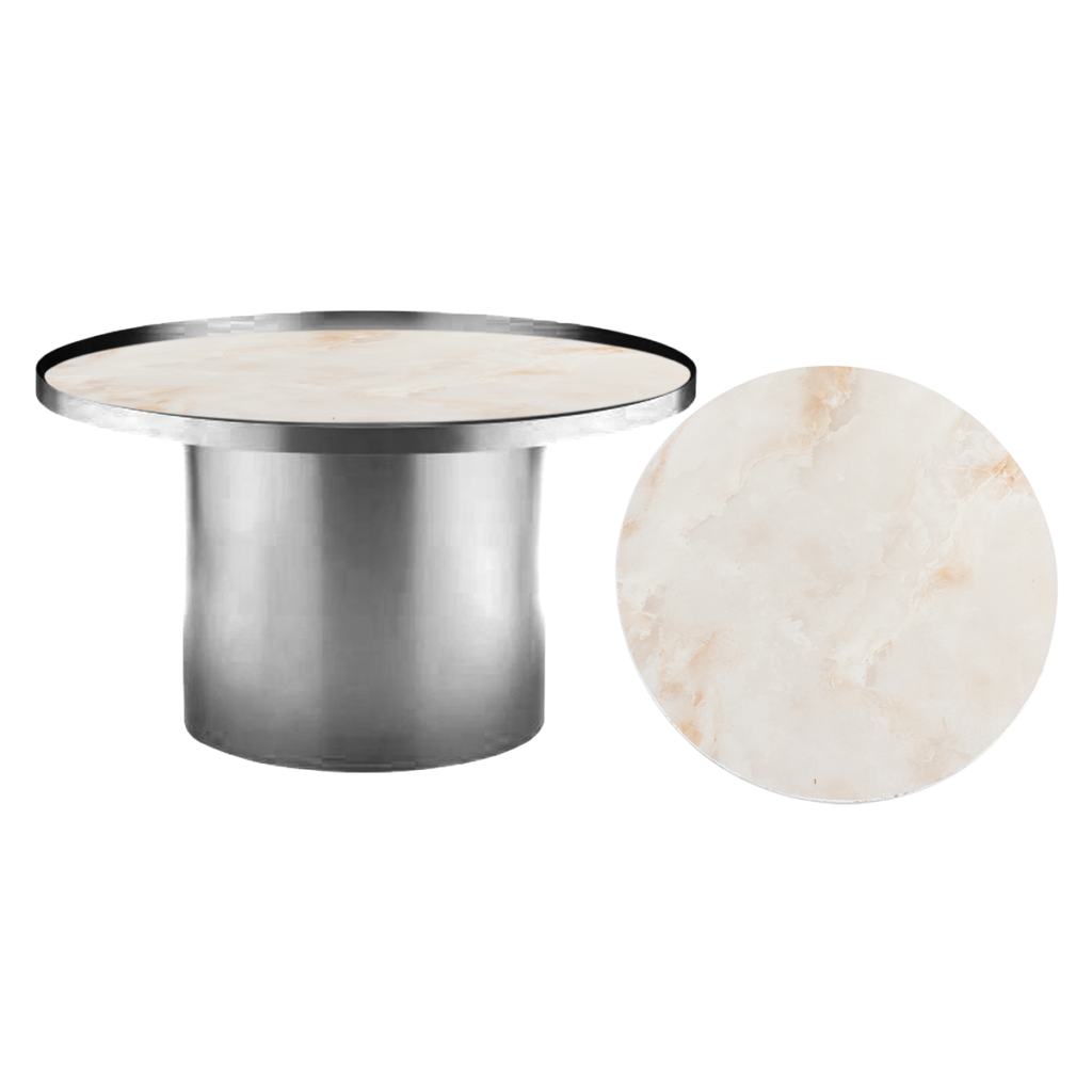Cylinder Coffee Table – Chrome With Cream Marble Insert