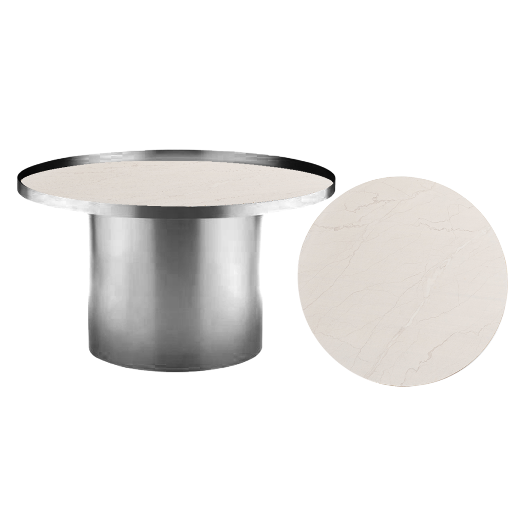 Cylinder Coffee Table – Chrome With White Marble Insert