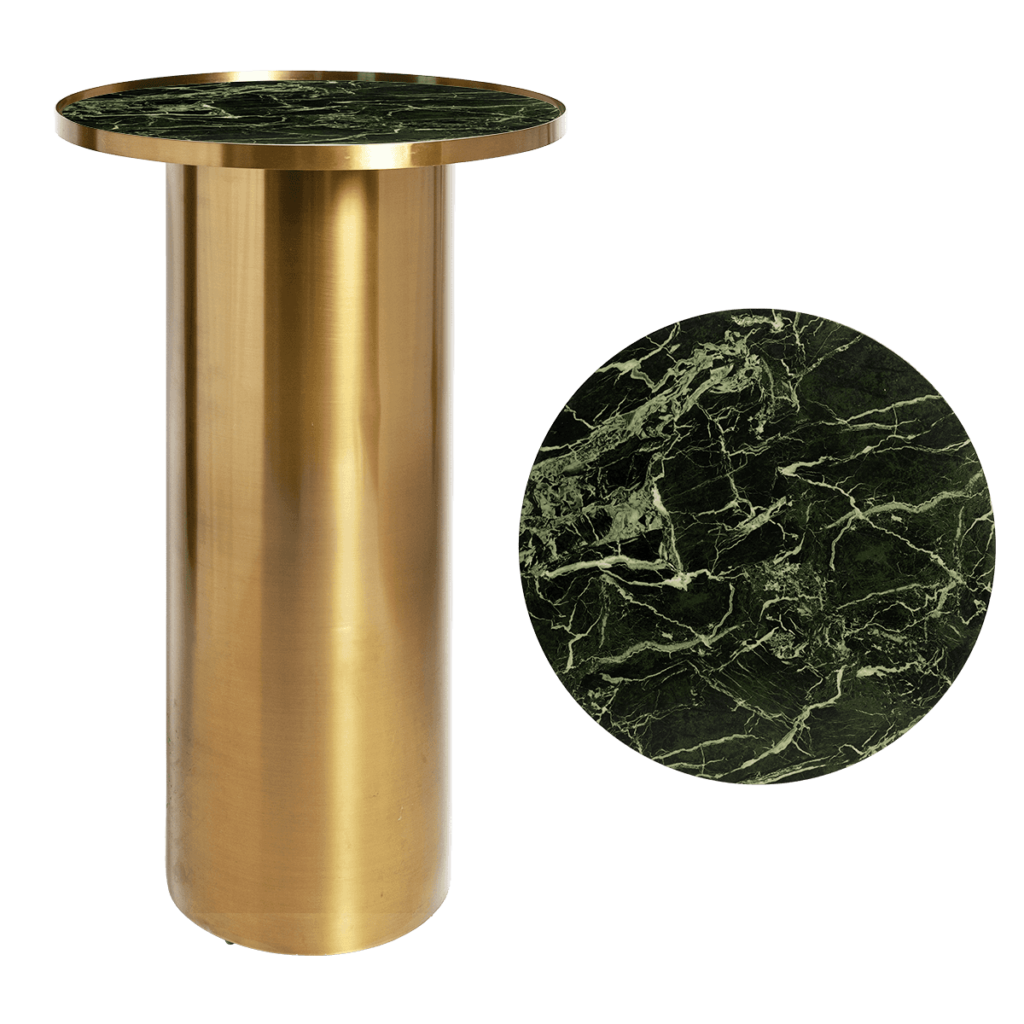 Cylinder High Bar Table – Brass With Green Marble Insert