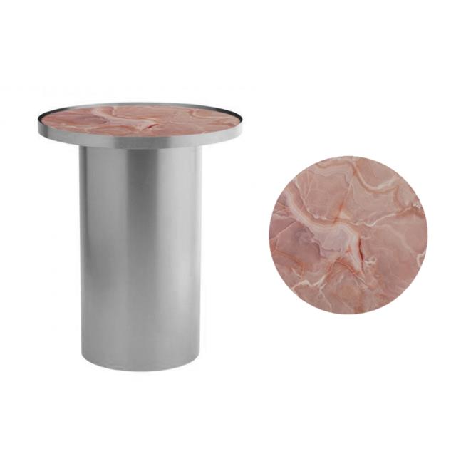 Cylinder Side Table – Chrome With Pink Marble Insert