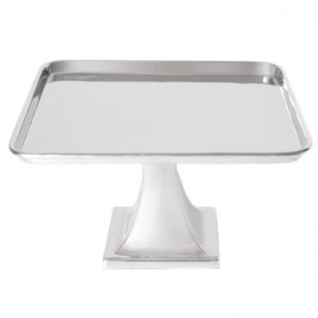 An elegant 32cm square silver cake stand which is perfect for displaying special occasion cakes, canapes and other desserts.