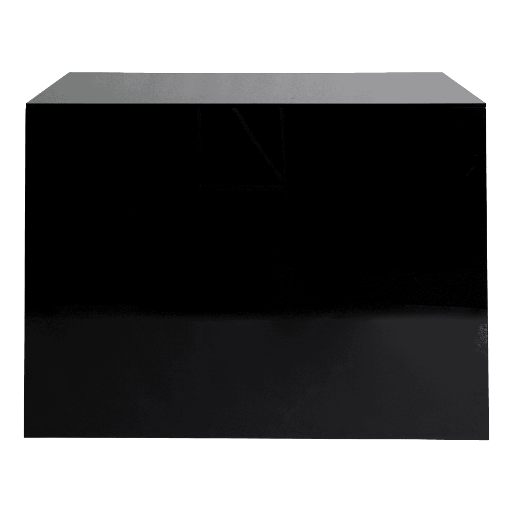 A contemporary bar with a black gloss finish. Perfect for serving drinks or as a canape, cake or dessert station. Includes an internal shelf. Also available in white gloss.