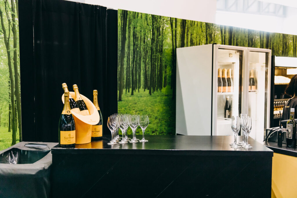 Only classy black for Verve Cliquot with our herringbone bar an elegant touch.