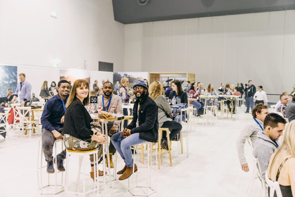 Happy #goodfoodies enjoying Cape Mentelle VIP. Our hive stools and concrete high bars doing their work!