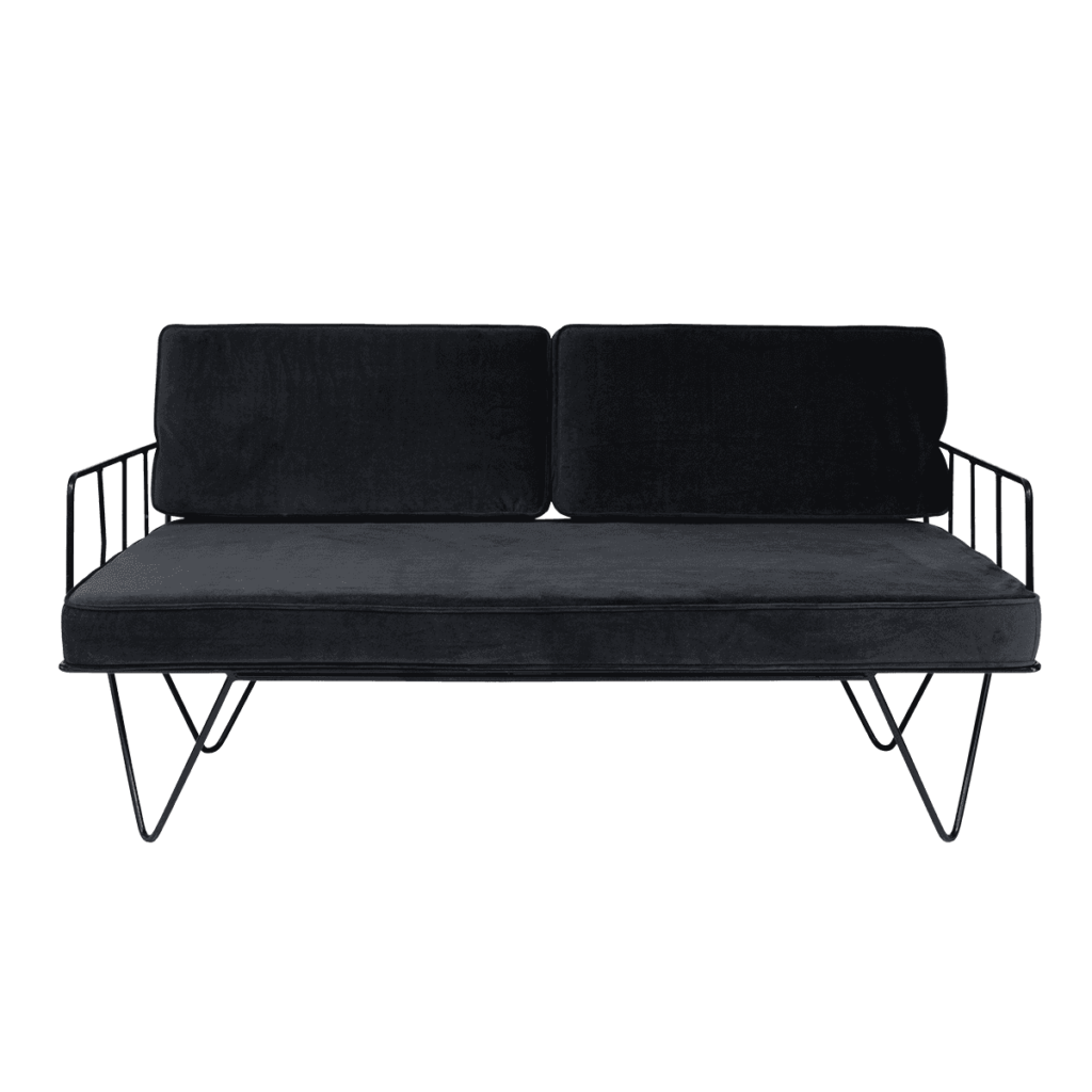 Linear Wire 2 Seater Sofa Lounge – Black With Charcoal Velevt Cushions