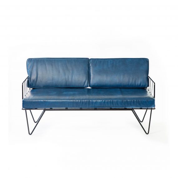 Linear Wire 2 Seater Sofa Lounge – Black With Petrol Blue Leather Cushions