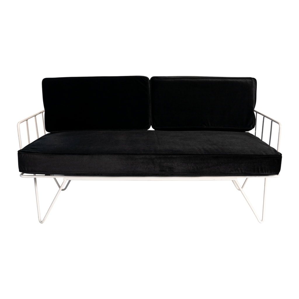 Linear Wire 2 Seater Sofa Lounge – White With Black Velvet Cushions