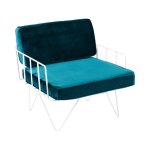 Linear Wire Single Seater Chair – White With Emerald Green Velvet Cushions