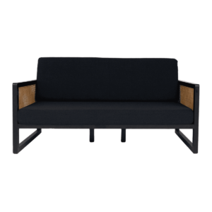Rattan Sofa Lounge – Black With Natural Cushions
