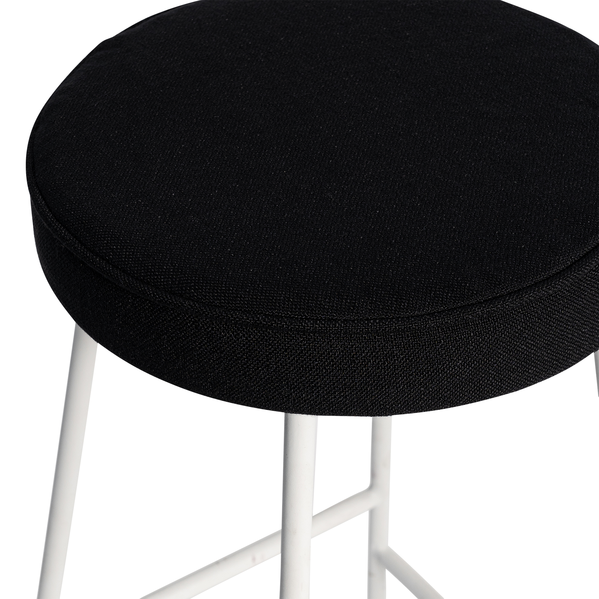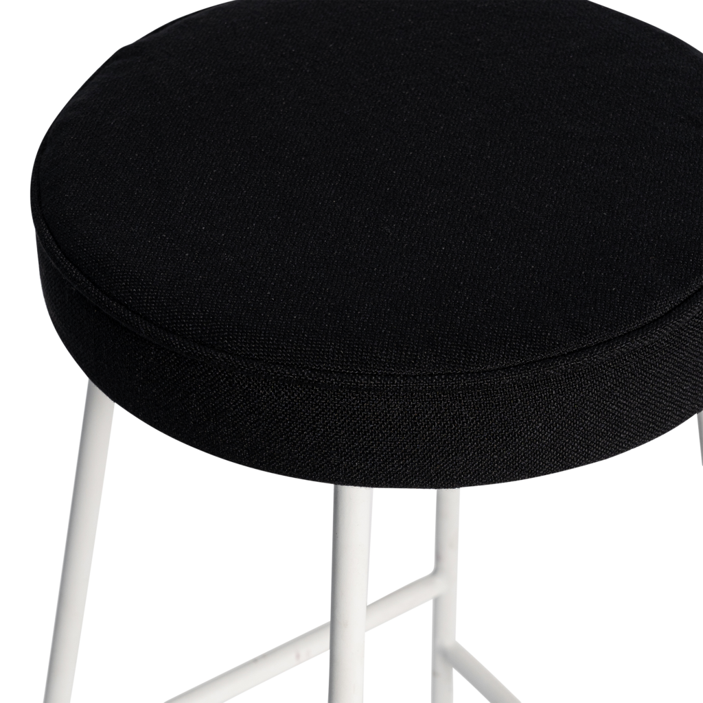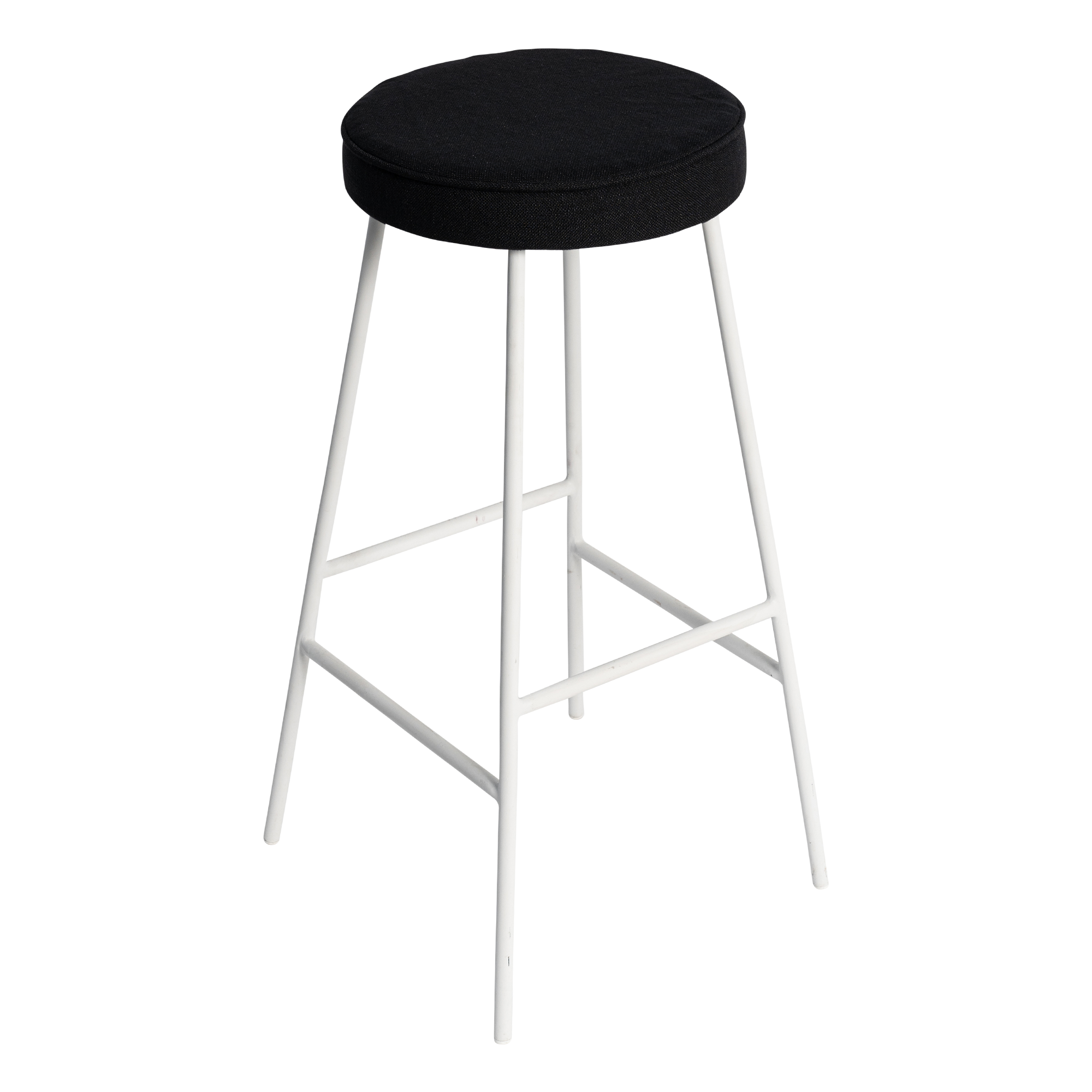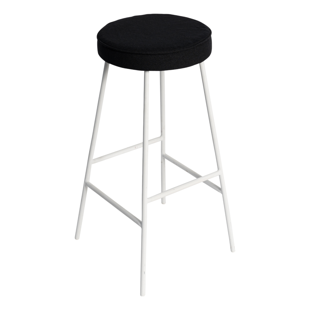 A sleek and simline bar stool that can go with any event! With a matte white frame and black fabric cushion cover. Cushion covers are interchangeable and available in a range of colours.