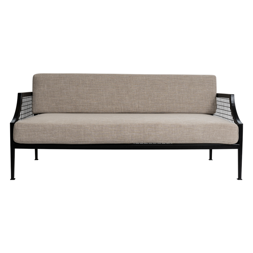 Classic meets modern in this mesh steel frame sofa with comfortable seating and back cushions. This sofa measures 180cm W x 77cm D x 66cm H and is also available in white frame and cushions.