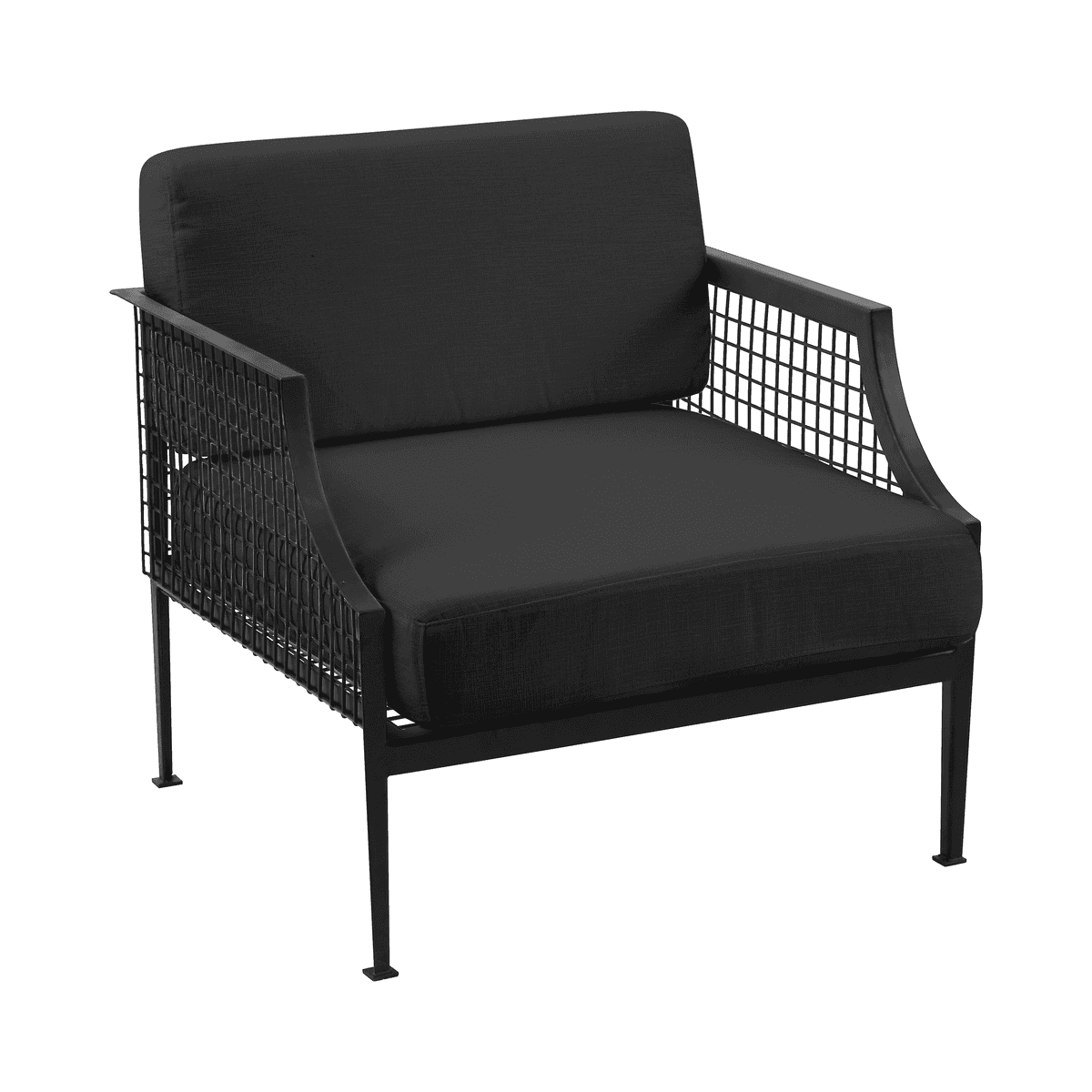 Classic meets modern in this mesh steel frame armchair with comfortable seating and back cushion. This armchair measures 82cm W x 77cm D x 80cm H and is also available with natural, white and charcoal cushions.