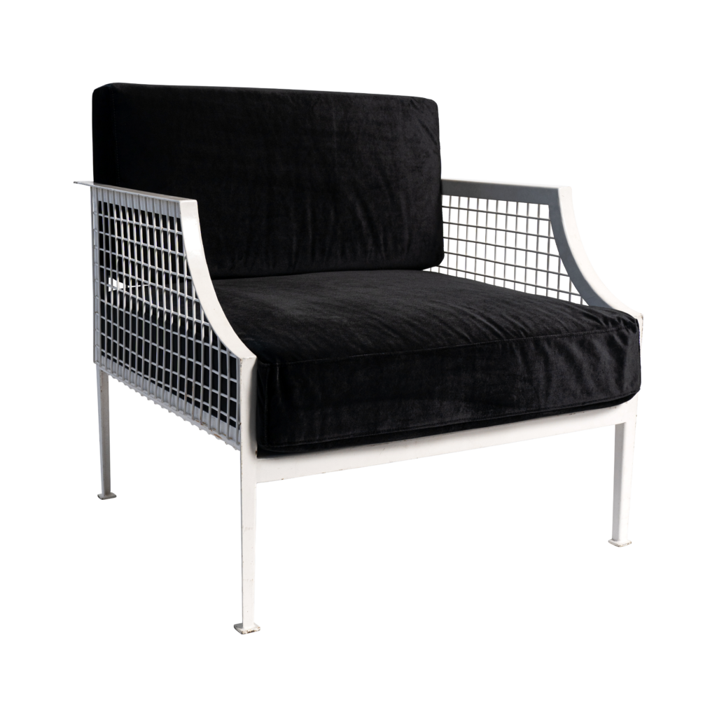 Marseille Mesh Single Seater Chair – White With Black Velvet Cushions
