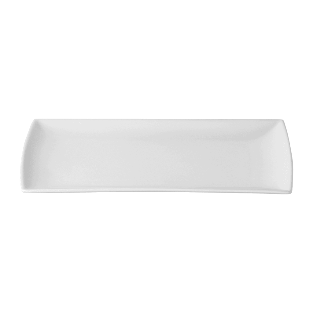 A rectangular ceramic white Maxwell Williams dinner plate measuring 310mm x 170mm. A smaller, matching entrée plate is available.