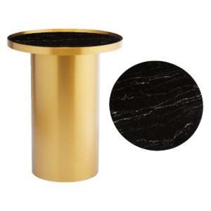 Cylinder Side Table – Gloss Brass With Black Marble Insert