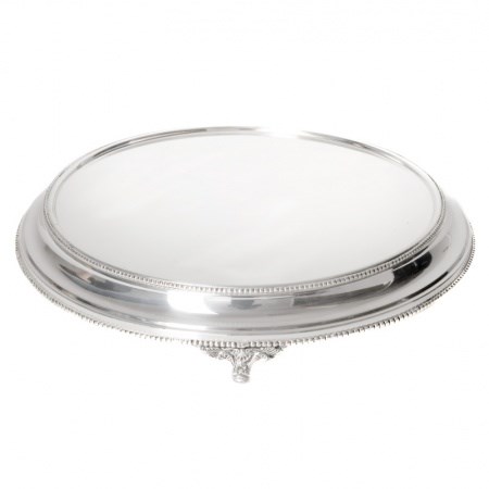 A large silver ornate cake stand measuring 38cm in diameter. Perfect for displaying special occasion cakes. Ideal for wedding cakes.