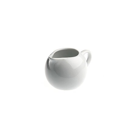 A small, simple ceramic white milk jug, that is perfect for tea and coffee service.