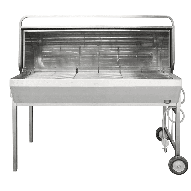 A commercial-quality stainless steel roaster with a large hood for cooking large quantities of meat. This is a LPG gas appliance. Fitted with a 3x meter long gas hose with LCC27 Gas Bottle fittings, so will only connect to the new style gas bottles. Gas is not included: full gas bottles are available to hire separately.