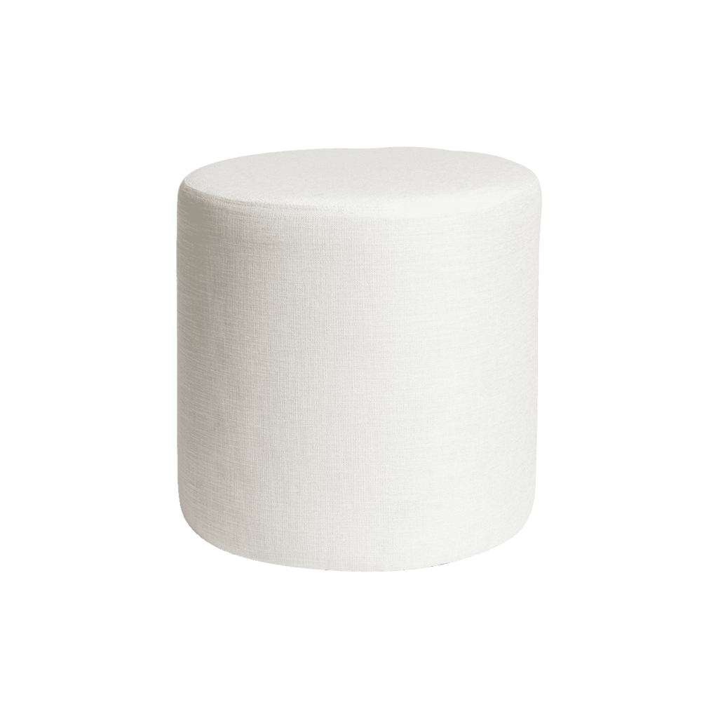 Round Ottoman – White Linen