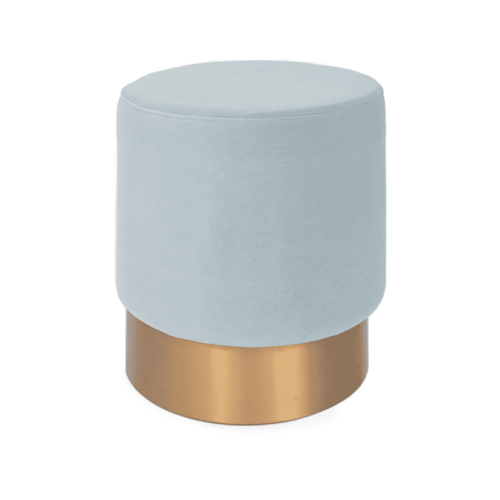 Round Velvet Ottoman – Powder Blue With Brass Base