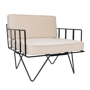 Linear Wire Single Seater Chair – Black With Natural Cushions