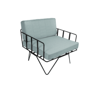 Linear Wire Single Seater Chair – Black With Duck Egg Blue Cushions