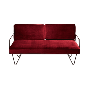 Linear Wire 2 Seater Sofa Lounge – Black With Oxblood Velvet Cushions