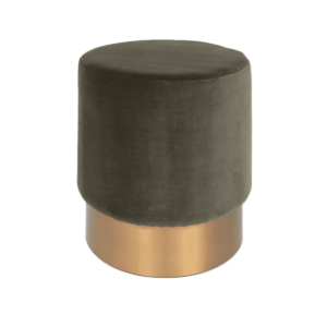 Round Velvet Ottoman – Army Green With Brass Base