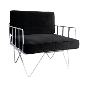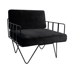 Linear Wire Single Seater Chair – Black With Black Velvet Cushions
