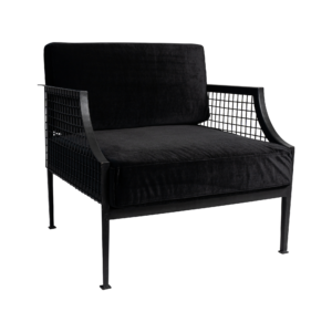 Marseille Mesh Single Seater Chair – Black With Black Velevt Cushions