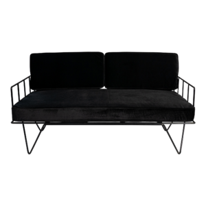 Linear Wire 2 Seater Sofa Lounge – Black With Black Velvet Cushions