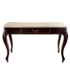 Signing Table – Ornate Black With Teak Top