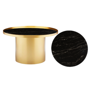 Cylinder Coffee Table – Gloss Brass With Black Marble Insert