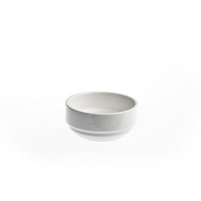 A small plain, white bowl ideal for small hand-held bowl foods. These bowls are very popular for a significant finger food function. Measures 11 cm in diameter.