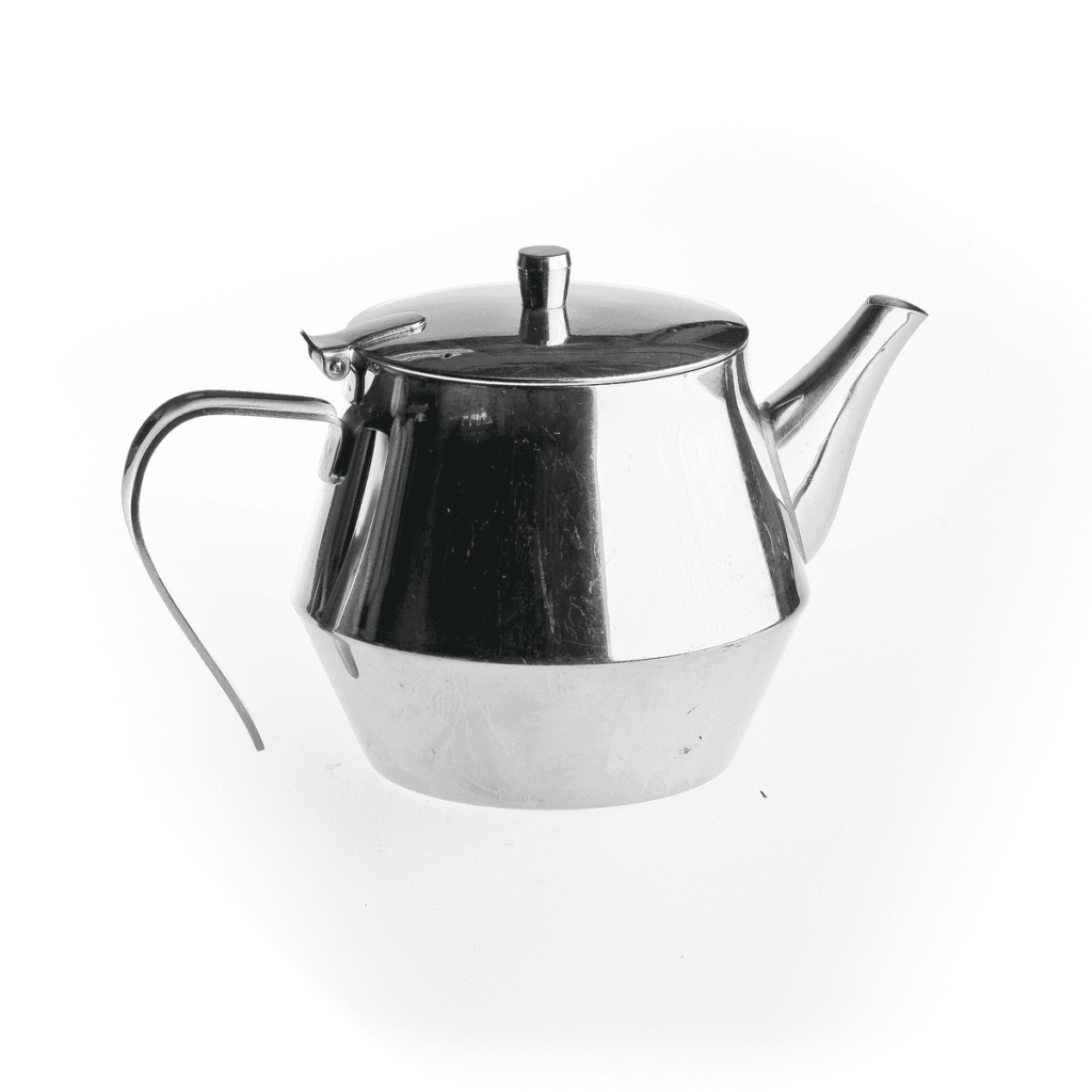 A traditional stainless steel teapot for tea service, which serves 4.