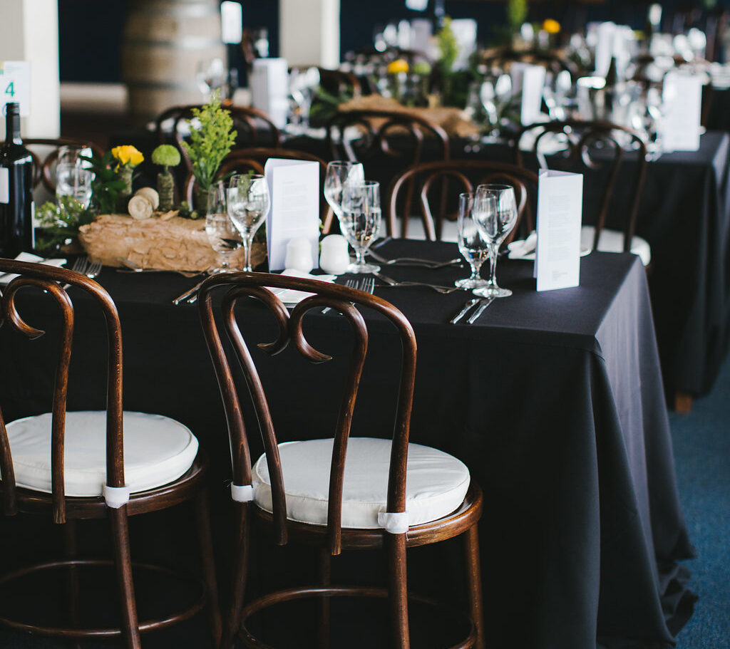 Keeping to neutrals, by no means has to be boring. Focus on bringing in varying shapes and rich textures. For chairs, consider a classic white bentwood or upholstered velvet. Your table linen can help to create a sense of luxury by having a full drop to the floor in whites, creams, oatmeal or stone colours, paired with either a matching or feature serviette.