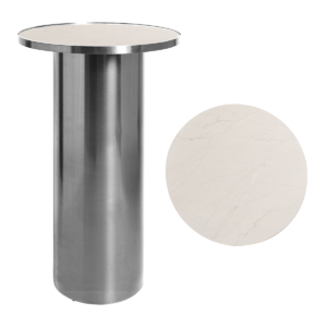 Cylinder High Bar Table – Chrome With White Marble Insert