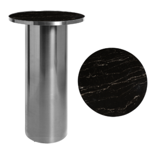Cylinder High Bar Table – Chrome With Black Marble Insert