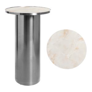 Cylinder High Bar Table – Chrome With Cream Marble Insert
