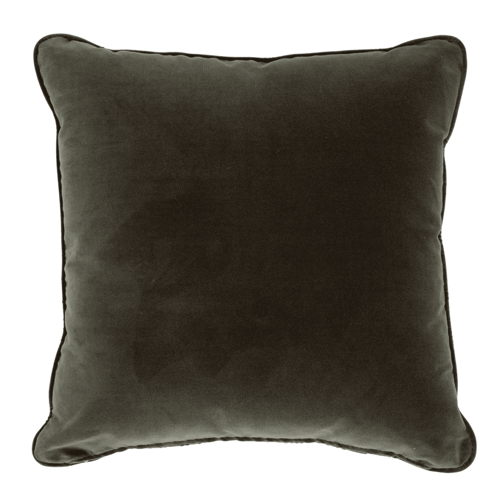 An olive green velvet throw cushion to add to any of our lounge settings.
