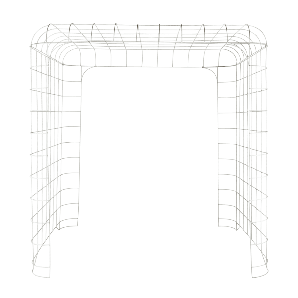 A modern white wire arbour that provides the perfect frame for stringing with flowers, greenery or lighting, and makes a perfect wedding arch or centrepiece.