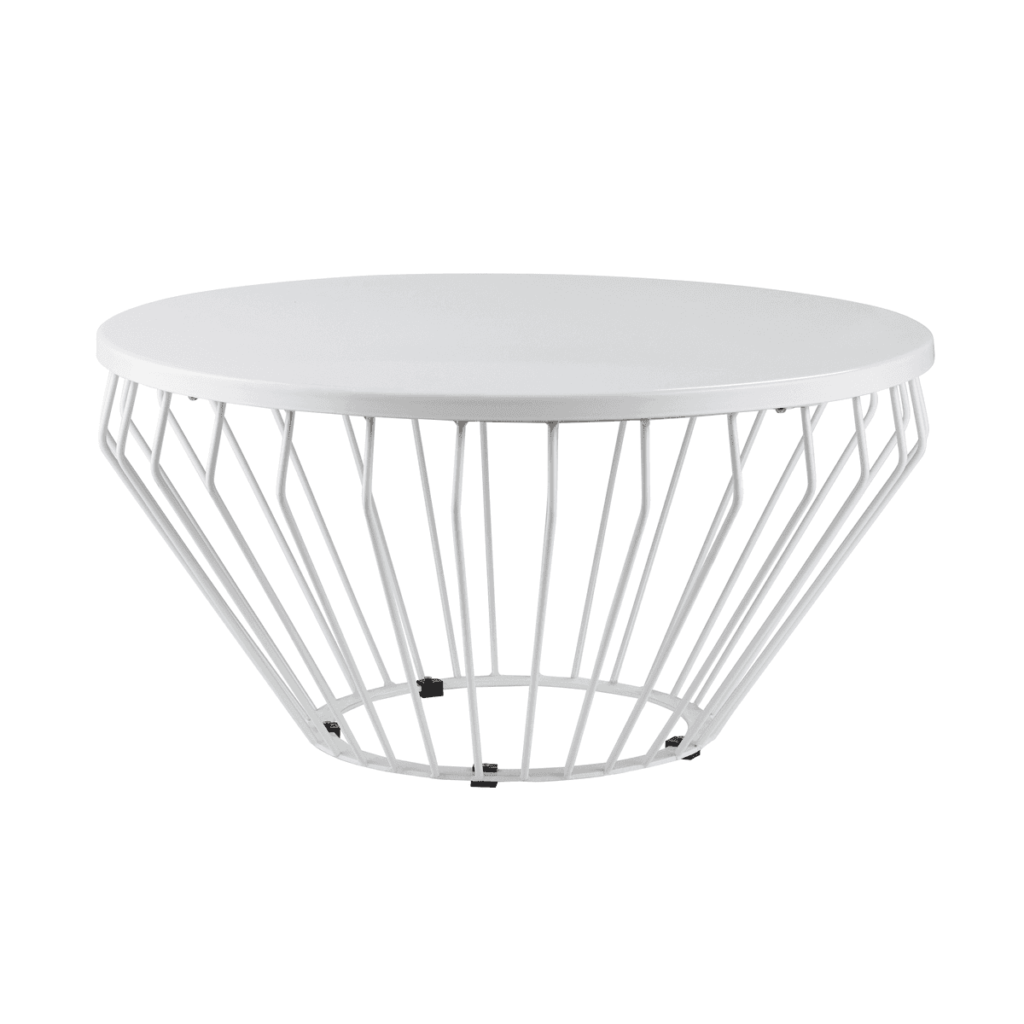 A contemporary powder-coated white wire coffee table that gives a modern look to your event. This coffee table is also available in black.